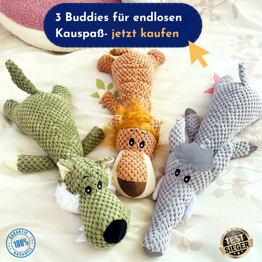 Neben dem weichen, strapazierfähigen Material sorgt ein integrierter Quietscher für noch mehr Unterhaltung. Jeder Biss wird mit einem spannenden Geräusch belohnt- für langanhaltende Freude und extra Spielanreize!